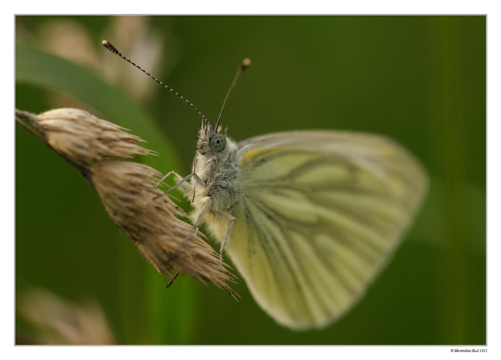 Der Rapsweißling macht mal Pause von einem anstrengenden Tag. War ja auch schon früher Abend, und da flattern die Tagfalter nimmer so gerne rum.