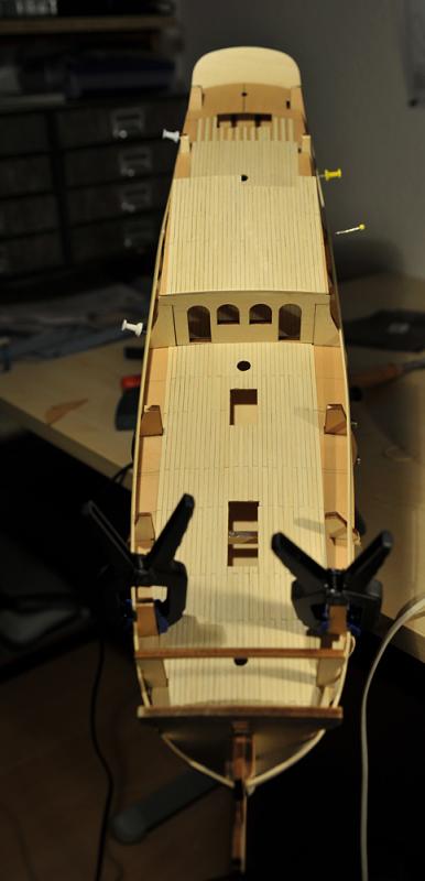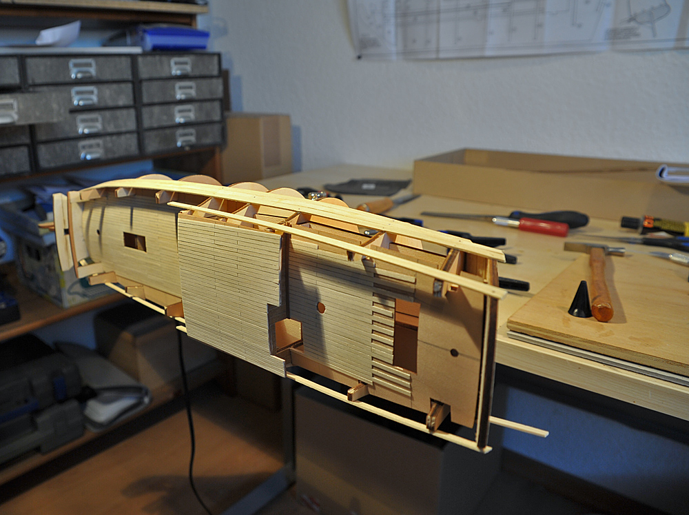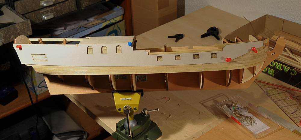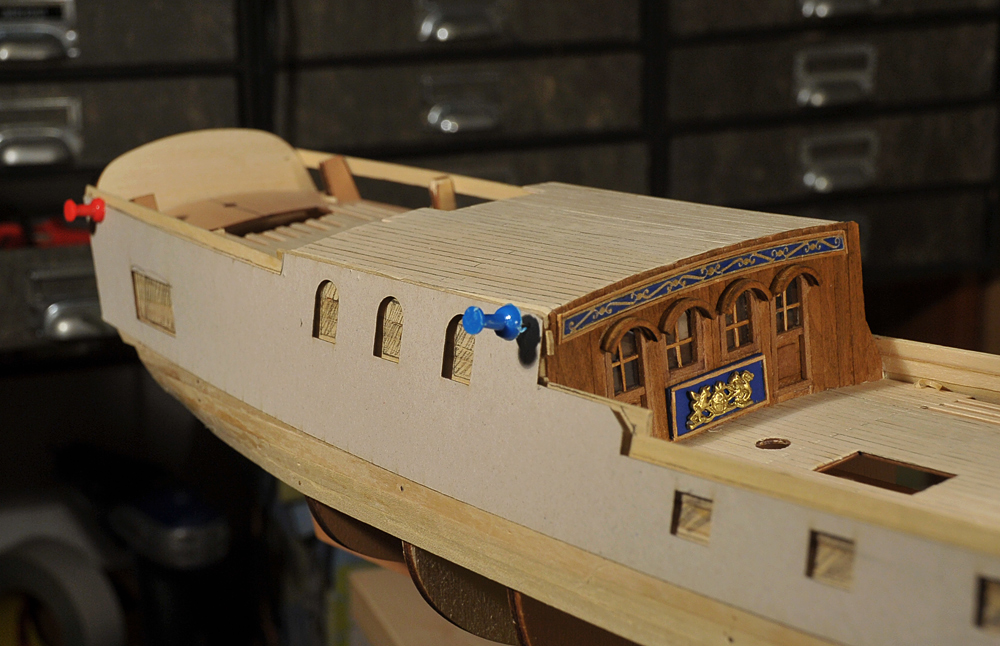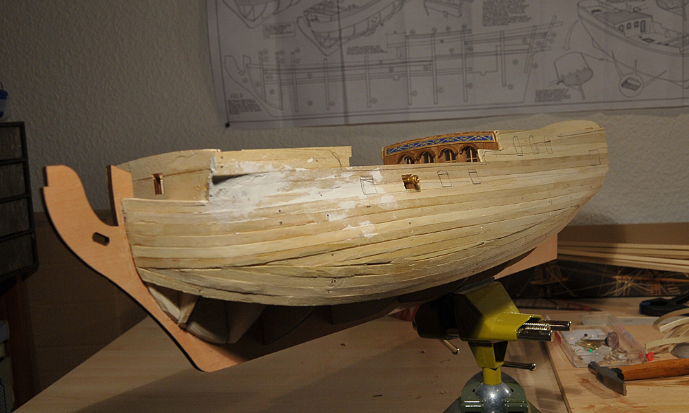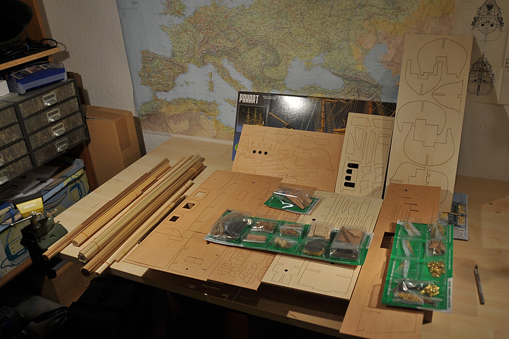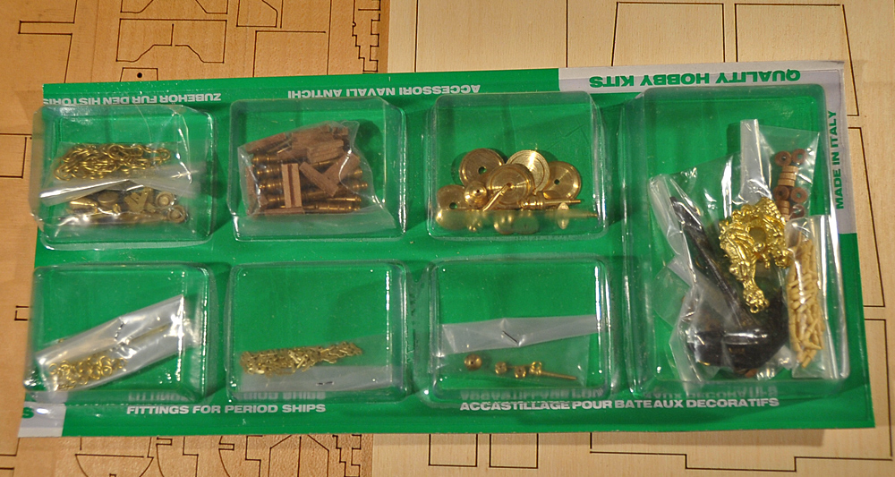 Der Bausatz der Royal Caroline von Panart, einer Tochter von Mantua Model, kann beim Auspacken und nach den ersten Wochen des Baus überzeugen. Das Holz ist von guter Qualität, die zahlreichen Verzierungen sind aus Messingguss. Alleine die Pläne, zumindest der Takel-Plan, könnten besser gestaltet sein.