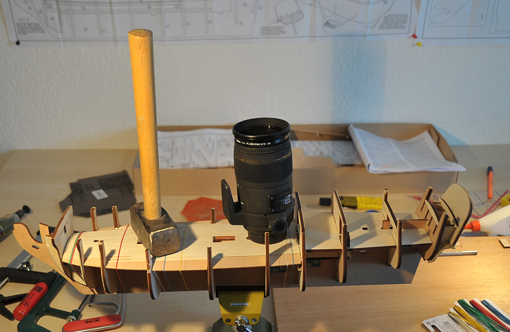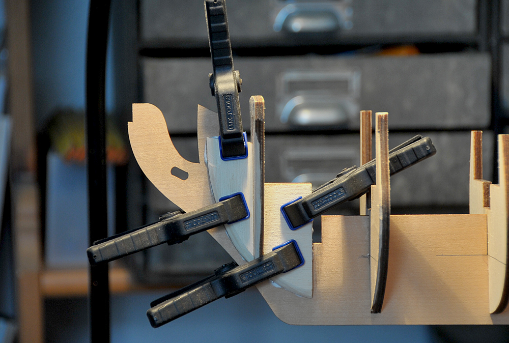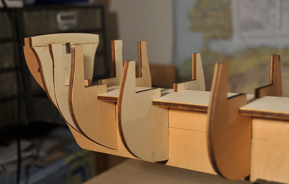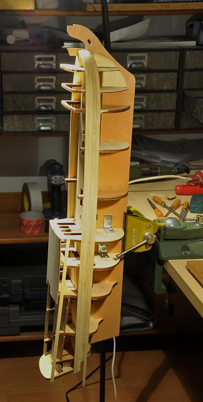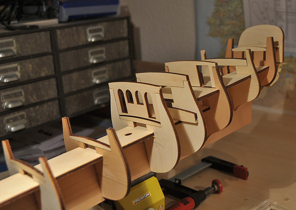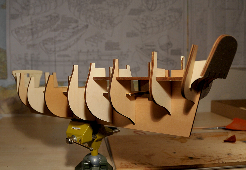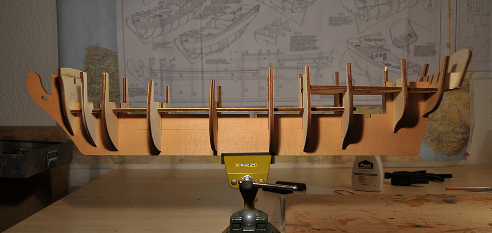 Kiel und Spanten sind wie alle vorgeschnittenen Teile Laser-cut und sehr passgenau. Es bedarf eigentlich keiner wirklichen Nacharbeit. Die Teile fügen sich schnell und korrekt zusammen.