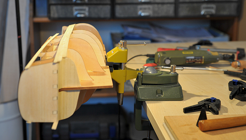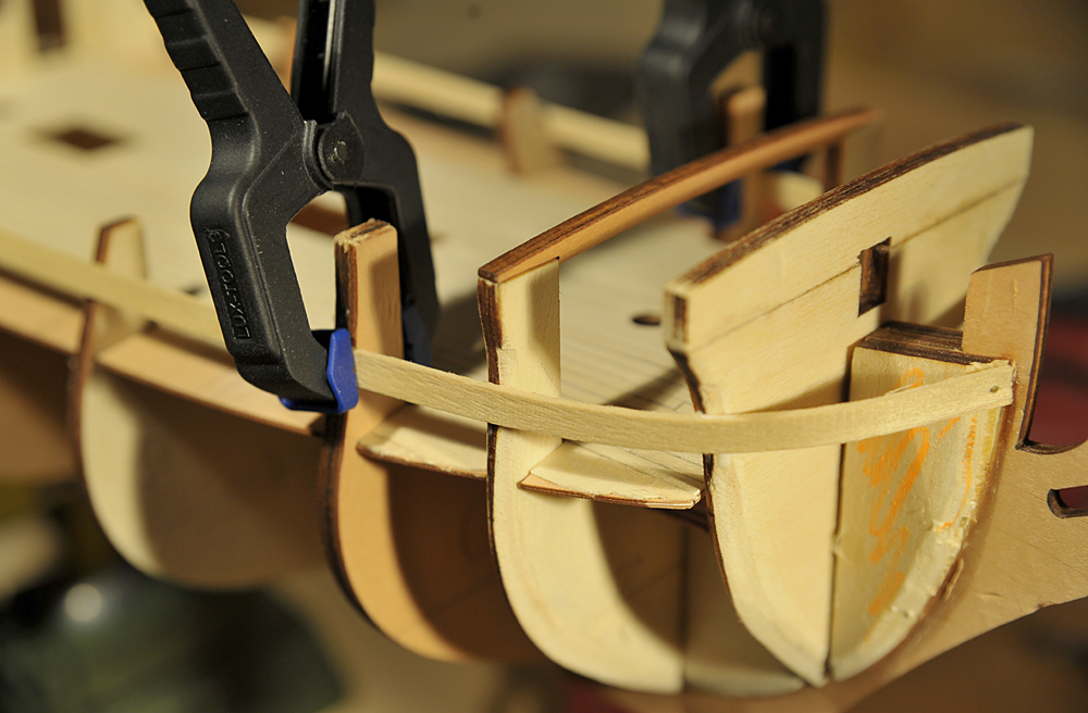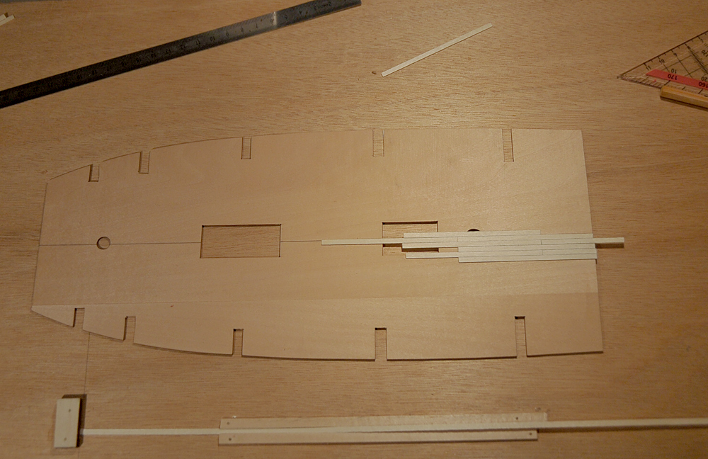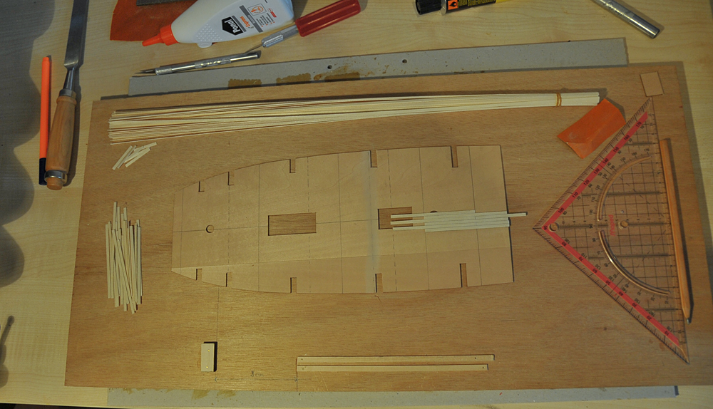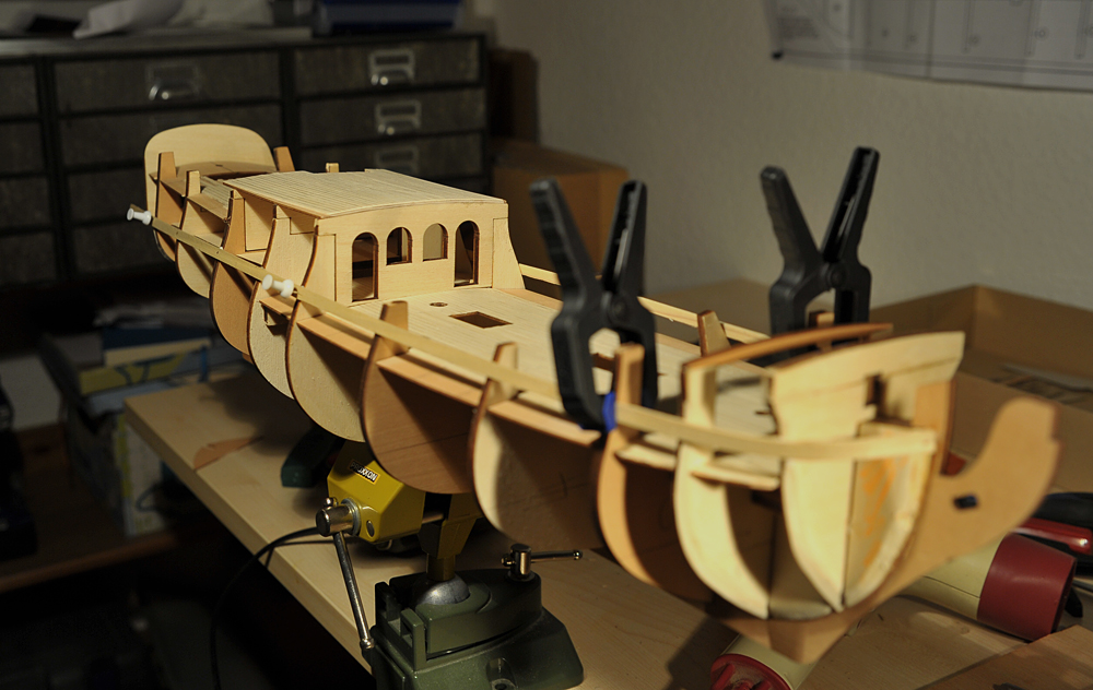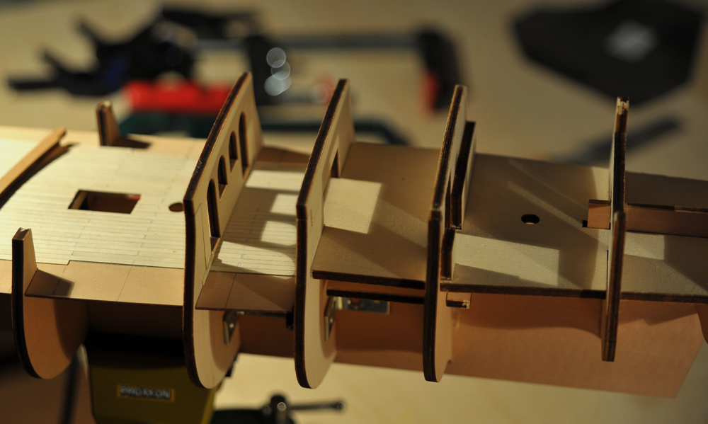 Kiel und Spanten sind wie alle vorgeschnittenen Teile Laser-cut und sehr passgenau. Es bedarf eigentlich keiner wirklichen Nacharbeit. Die Teile fügen sich schnell und korrekt zusammen.