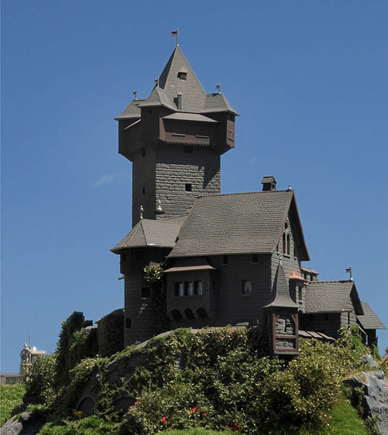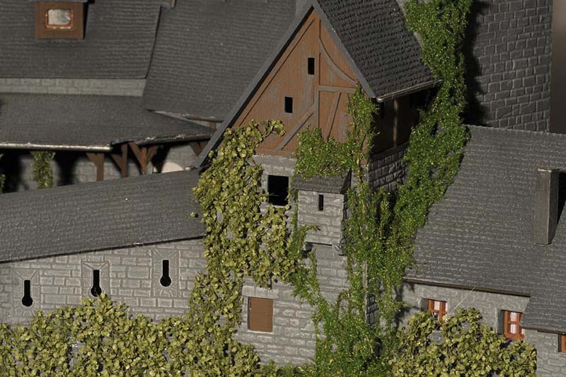 Es ist im H0-Maßstab 1:87 nicht möglich, jedes Detail maßstäblich wiederzugeben. Deshalb ist es umso wichtiger, den Gesamteindruck in sich stimmig zu gestalten. Ich hoffe, dass ist mir mit der Burg Bärenklamm gelungen.