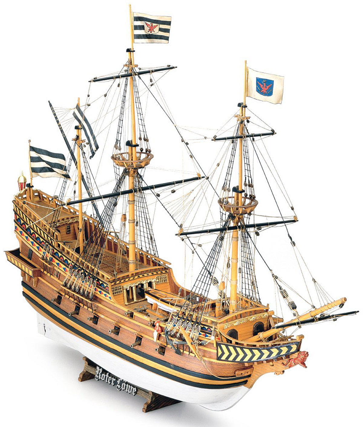 Der Bau des Roten Löwen ist mein geplantes nächstes Schiffsmodell. Dazu werde ich den abgebildeten Bausatz des Mailänder Herstellers Mamoli verwenden. Inwieweit ich Veränderungen vornehme ist unklar - hängt von der Qualität des Bausatzes ab. Beginn ist momentan nicht absehbar. Wegen Lieferschwierigkeiten habe ich ein anderes Modell, die HMY Royal Caroline von Panart im Maßstab 1:47 vorgezogen. Näheres dazu so bald als möglich.